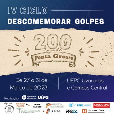 Teve início nesta segunda-feira (27) o IV Ciclo Descomemorar Golpes, com atividades programadas até sexta-feira (31). Realizado pelo programa de extensão Agência de Jornalismo da UEPG, o evento também conta com apoio do SINDUEPG, de projetos de extensão, do Mestrado em Jornalismo e dos cursos de Direito e História da UEPG. No ano de 2023, […]