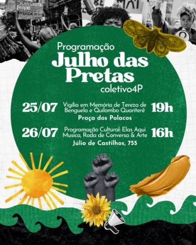 Por Joyce Clara Nesta sexta-feira (25) e sábado (26), o Coletivo 4P promove o Julho das Pretas, com diversas atividades culturais e políticas. O objetivo do evento é referenciar a ancestralidade e as mulheres que resistem à colonização patriarcal. A data engloba o Dia Internacional da Mulher Negra Latino-americana e Caribenha e o Dia Nacional […]