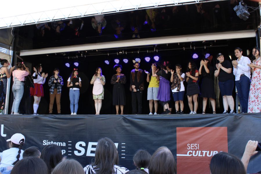 Os cenários e figurinos foram todos pensados e feitos pelos próprios estudantes. O coordenador do grupo de teatro do Sesi, Fábio Clavisso, relata sobre a colaboração na escolha do tema. “Os alunos fizeram votação para decidir as histórias da peça e o roteiro foi escrito por várias mãos”, explica. Ele afirma que o cenário precisou ser feito de forma rápida, pois a apresentação foi marcada antes de estar com a estrutura completa.