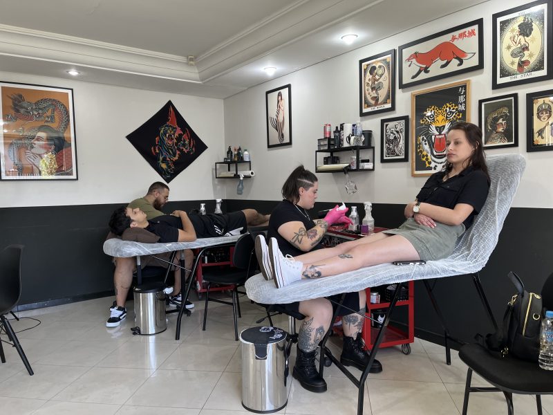 Foto: Duda MacedoNo último sábado e domingo (12 e 13) ocorreu o Sorry Mom, um evento de Flash Tattoos, realizado pela Casa Víbora. No encontro, as tatuagens eram todas autorais de mais de 10 tatuadores, convidados e do próprio estúdio. Foram 14 horas no total, com mais de 100 artes disponíveis para tatuar na hora e agendamentos, além de comidas, bebidas e produtos artesanais.