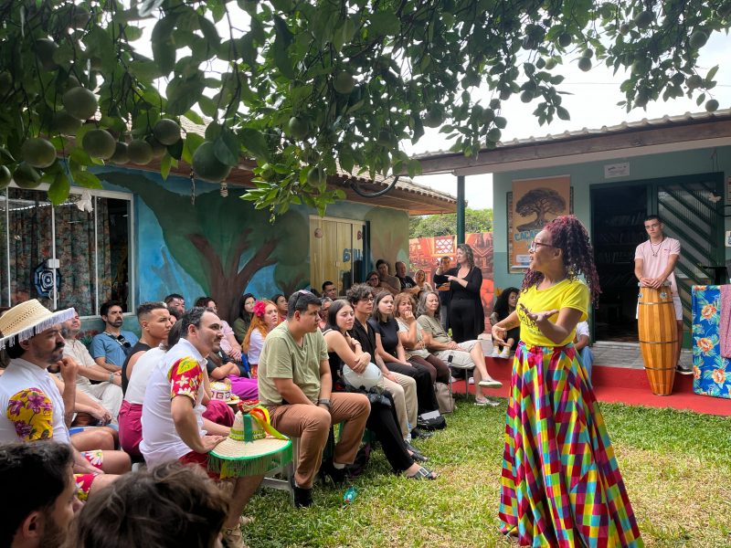 Alfredo Mourão é contador de histórias e esteve presente no evento. Ele ressaltou a importância de um espaço de interação, contação e trocas literárias. Para Mourão, esses momentos são essenciais, pois permitem não apenas compartilhar histórias, mas também para conhecimento e conexão com o trabalho criativo de outros contadores. Segundo ele, todos têm histórias para contar, e iniciativas como o Bando da Leitura são uma oportunidade para contá-las. “Além de espalhar sabedoria e pensamento crítico, os contos estimulam a reflexão e a criatividade”, afirma. Mourão ainda destacou que os adultos de hoje precisam muito mais de histórias, e que momentos proporcionados pelo Cacarejando são enriquecedores para todas as faixas etárias, aproximando-as e fazendo com que a comunidade deixe a tecnologia de lado e abrace a troca de olhares e palavras.