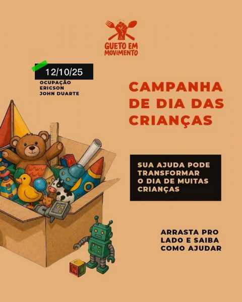 O Gueto e Movimento convida toda a comunidade a participar, seja com presença, doações ou divulgação, e reforça que cada gesto de apoio ajuda a construir um dia mais feliz para as crianças e jovens da Eric Johnson Duarte.