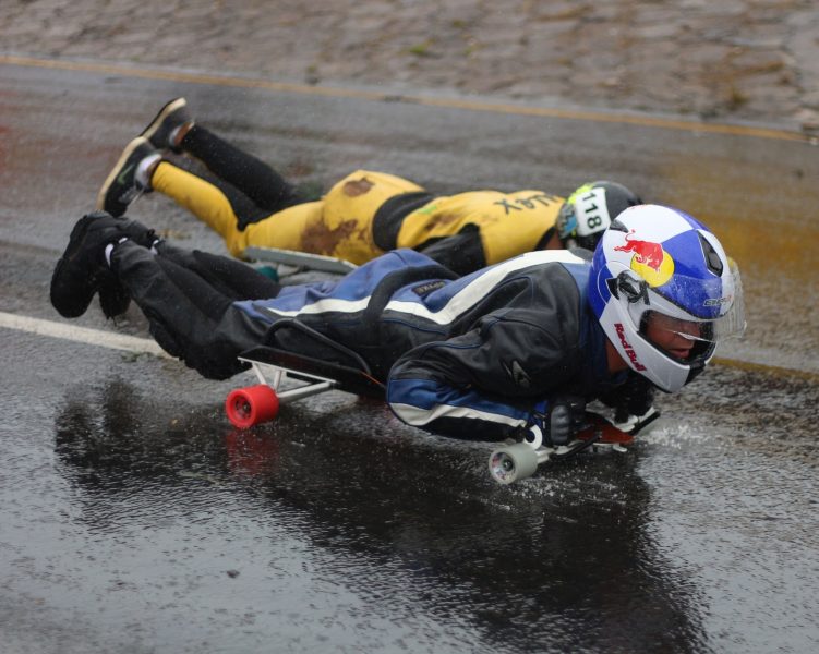 Corrida de rolimã realizada na Avenida Visconde de Taunay, no bairro da Ronda, em 2016 (João Guilherme Castro / Lente Quente)Capacetes exóticos, macacão colorido e muita velocidade, esse foi o clima na Avenida Visconde de Taunay no dia primeiro de outubro. A “52 Corrida de Rolamentos Malucos dos Campos Gerais” aconteceu das 10h da manhã e foi até ao anoitecer do domingo. Corredores desciam a avenida até a linha de chegada enquanto as pessoas assistiam e torciam animadas. Baterias distintas foram disputadas ao longo do dia, como rolimã normal, grid, sled, long, e luge. Adultos e crianças concorriam no GP.