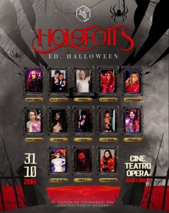 Para uma noite marcante de Halloween em Ponta Grossa, o Holofotes, que recentemente completou dois anos de atuação cultural na cidade, convida o público para uma experiência artística que além de valorizar a cena drag local, apresenta performances de arrepiar: “Um ritual de arte, música e diversidade que transforma o medo em encanto e o escuro em espetáculo.”