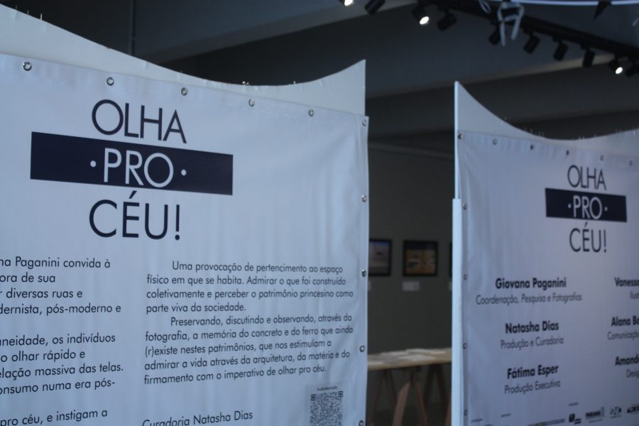 “Preservando, discutindo e observando, através da fotografia, a memória do concreto e do ferro que ainda (r)existe nestes patrimônios, que nos estimulam a admirar a vida através da arquitetura, da matéria e do firmamento como imperativo de olhar pro céu” – esta é apresentação de Natasha Dias na descrição da exposição fotográfica Olhe pro céu! que teve abertura na última quinta-feira (30), no Acervo Municipal de Obras de Arte de Ponta Grossa.