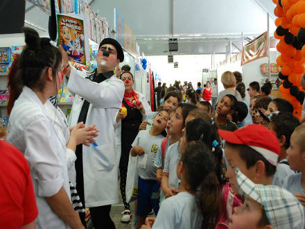 Doutores Palhaços encantam público infantil (Roseli Stepurski)Mesmo antes do horário de abertura do evento, várias escolas municipais de Ponta Grossa levaram seus alunos para aproveitar mais um dia da II Feira Literária Internacional dos Campos Gerais. As crianças mais uma vez, tomaram conta da manhã e da tarde da feira. Isto porque a programação marcada no local era voltada ao público infantil.