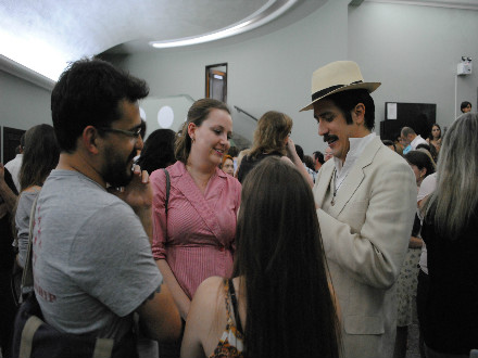 Eduardo Mossri se dirigiu ao Hall do Cine-Teatro Ópera e coletou informações com o público para serem usadas na peça