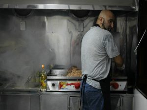 O expediente diário é das 18h30 à meia noite, mas nos dias de maior movimento, como finais de semana, o serviço fica disponível até mais tarde, por volta das 02h30. Além do shawarma, são vendidos também o beirute e o mexicano. “O ‘mexicano’ é um prato com pão de baquete, legumes, shoyo, pimenta, carne de boi ou de frango, ou misto também. É um dos mais procurados, depois do shawarma”, conta o proprietário.
