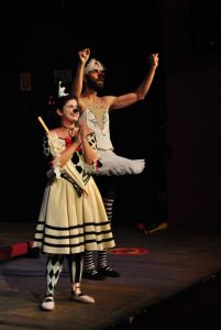Ana Baldani e Roberto Siemieniaco divertem o público na tentativa de realizar o sonho da personagem Valentina: ser bailarina equilibrista de circo. Foto: Ana Luisa VaguettiPor Ana Luisa Vaguetti, Barbara Popadiuk e Jéssica Gradin