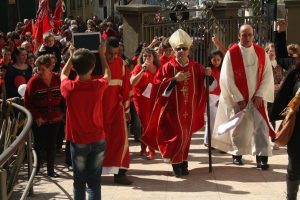 A festa tem início 50 dias antes da celebração tradicional. A organizadora, juntamente com o Bispo, recebe a bandeira do Espirito Santo e segue um calendário de agendas nas casas, entidades e empresas dos devotos. “Temos o envio da bandeira do Divino com o Bispo, para que possamos ir às comunidades, casas, igreja e também para fazermos o anúncio da Festa do Divino”.