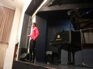O pianista Bruno Hrabovsky falando sobre o significado de uma das músicas durante a apresentação. Foto: Gabriel MiguelPor Gabriel Miguel
