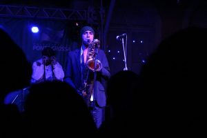 Foto: William ClarindoNa noite de apresentações do sábado (11), a banda curitibana Confraria da Costa subiu no palco da Estação Saudade para enlouquecer o público que estava sofrendo com a baixa temperatura. O grupo encerrou os trabalhos no fim de semana do 8° Festival de Música. Os membros Ivan (vocal e violão), Abdul (bateria), Jhonatan (metais), Richard (violino), Pantaleoni (baixo), Hermann (guitarra) e André (percussão) começaram a tocar por volta das 20:30, horário previsto para o show.