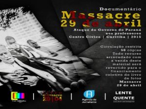 O documentário ‘Massacre 29 de abril’ retrata de forma inédita, em 45 minutos, os acontecimentos do trágico episódio no Centro Cívico, em Curitiba, há um mês, quando a polícia atacou professores que desejavam acompanhar sessão da Assembleia Legislativa que iria votar projeto de alteração da Paranaprevidência, deixando mais de 300 feridos.