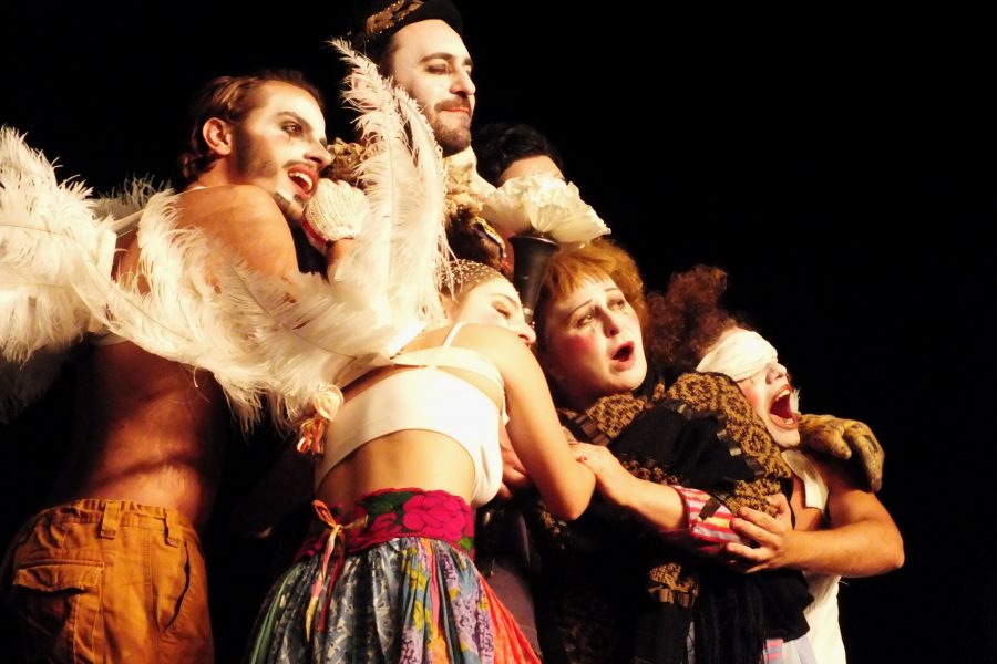 "A obra é composta por 14 atores que contracenam num palco com objetos vintage, cadeiras, mesas e um piano ao fundo que puxa o ritmo musical"