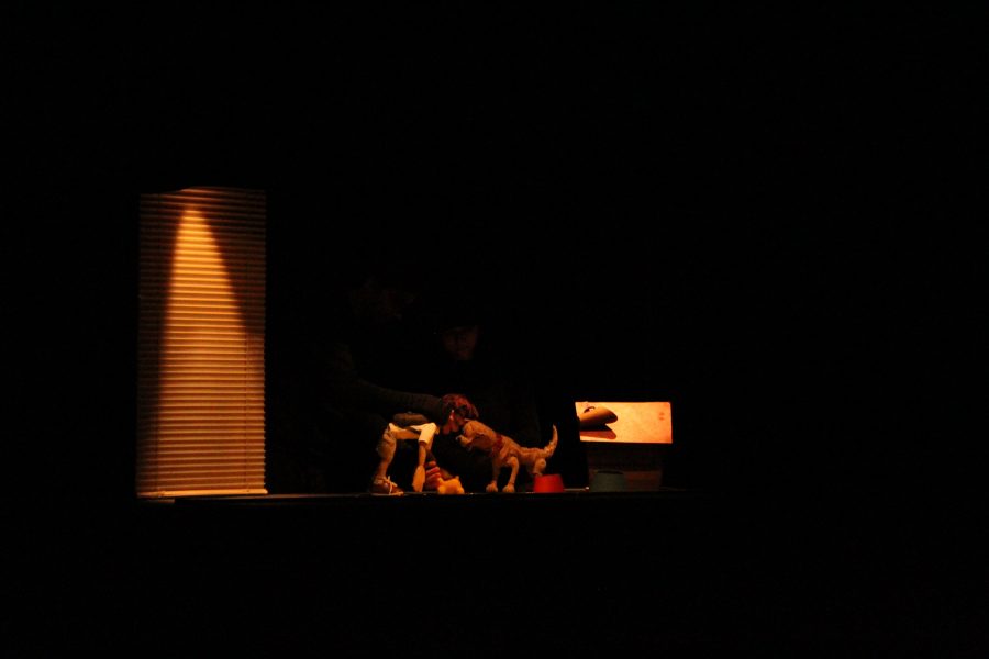Dico Ferreira é o diretor da peça, que mescla linguagem de teatro de bonecos e animação corporal. A apresentação acontece toda em cima de um balcão, onde os atores Eduardo Santos e Carolina Maia controlam os bonecos. Sendo assim, o público vê o espetáculo como se estivesse observando por uma janela.