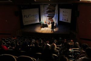 Após essa fala, o escritor encerrou a palestra e conversou com o público durante 30 minutos sobre o reflexo do autor nas suas crônicas, seu processo criativo, as reações dos leitores e a diferença entre conto e crônica.