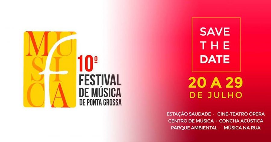 Foto: DivulgaçãoDe 20 a 29 de julho, a Fundação Municipal de Cultura e a Prefeitura apresentam o 10° Festival de Música de Ponta Grossa, que reúne músicos locais e de outros lugares do Brasil em diversas apresentações.