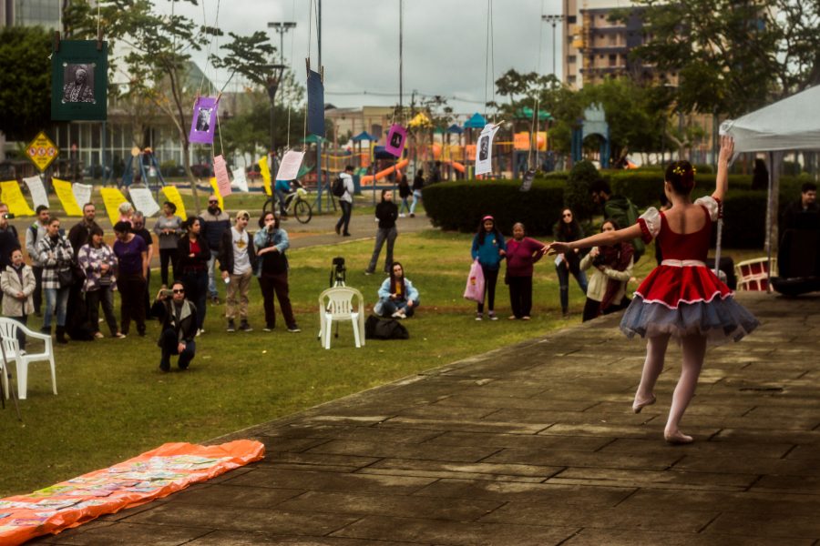 Foto: Yuri MarcinikiA 7ª edição da Feira Cultura Plural, organizada pelo projeto de extensão do curso de Jornalismo da Universidade Estadual de Ponta Grossa, contou com várias apresentações de grupos culturais da cidade no último sábado. O palco foi montado na parte externa da Casa da Memória e movimentou a manhã de muitos pedestres e curiosos, das 9 horas às 13 horas, no Complexo Ambiental. A feira, que acontece desde 2012, contou com apresentações musicais, exposições, ballet, leituras e varal de poesias.