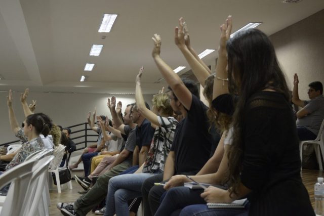 Votação para conselheiros na Conferência deste ano. Os conselheiros são responsáveis pela elaboração dos editais de cada segmento cultural. Foto: Matheus GastaldonO Centro de Música recebeu, de 3 a 5 de abril, a 20° Conferência Municipal de Cultura, que colocou em pauta as políticas culturais da cidade. Na última sexta-feira (05) foi realizado o último encontro com a escolha de homenageados para os Prêmios Culturais, que possui oito categorias, e a eleição de novos conselheiros para ocupar as vagas de sete segmentos do Conselho Municipal de Políticas Culturais (CMPC).