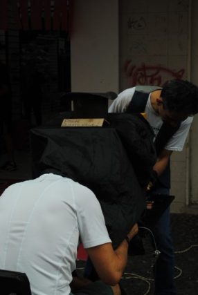 O espectador se senta na cadeira e cobre a cabeça com um pano, coloca fones de ouvido enquanto o teatro é produzido com pequenos bonecos dentro de uma caixa. “A Vizinhança” retrata a história de dois vizinhos e tem duração de três minutos.