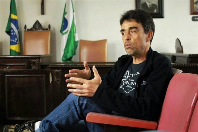 Entre os presentes esteve o professor da UEPG Gilson Burigo - Foto: Rafael Schoenherr / MCGOs reflexos do aquecimento global foram tema do filme “O amanhã é hoje – o drama de brasileiros impactados pelas mudanças climáticas” (2018), produzido e dirigido pela jornalista Thais Lazzeri. Promovido pelo Projeto Fissura no Museu Campos Gerais neste sábado (21), o Cinedebate trouxe uma discussão sobre questões climáticas que o Brasil vem enfrentando nos últimos anos.