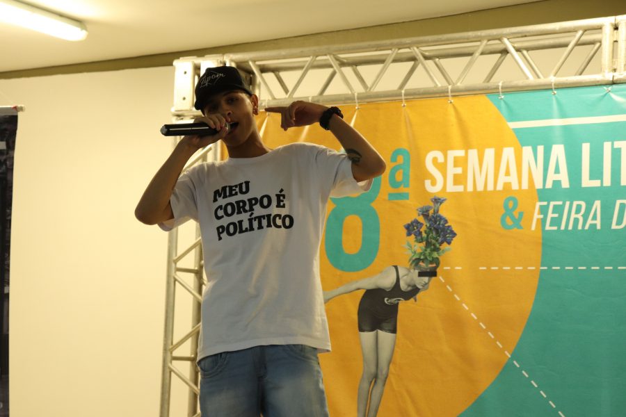 Foto: Manuela RoqueO evento ‘Batalha de poesia com Slam da Ponta’ teve início às 19h30 da última sexta-feira (27) no SESC Ponta Grossa e trouxe alguns slamers (poetas majoritariamente vindos das periferias) da grande metrópole de São Paulo. Entre eles, Lucas Alfonso de Castro Silva, responsável por mediar o palco aberto e posteriormente as batalhas.