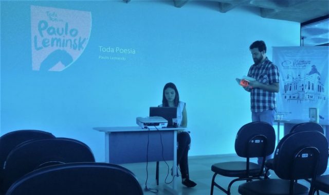 Kebler Bordinhão discute Toda Poesia de Paulo Leminski. | Foto: Jessica GrossiNo último sábado (16), às 14 horas, aconteceu o #Vem Vestiba, projeto promovido pela Biblioteca Pública Professor Bruno Enei para debater as cinco obras que serão avaliadas no vestibular de verão da Universidade Estadual de Ponta Grossa (UEPG) deste ano. O evento faz parte do Conecta Biblioteca que tem o objetivo de usar o espaço da biblioteca para diferentes atividades.