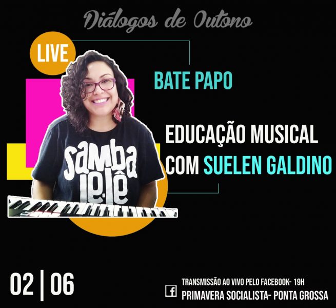 Diálogos de Outono: Educação Musical. | Foto: divulgaçãoNa transmissão ao vivo desta semana, no perfil ‘Primavera Socialista’, a professora Suelen Galdino, mestre em Artes, vai falar sobre a educação musical no currículo das escolas públicas. A live acontece nesta terça-feira às 19h.