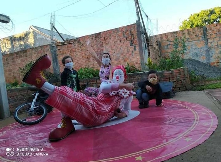 Legenda: Palhaço Picolé realiza atividades culturais em forma de delivery respeitando o isolamento social. | Foto: Acervo próprio.Edital estadual avaliou itens como originalidade, consistência da proposta, performance, relevância e abrangência cultural