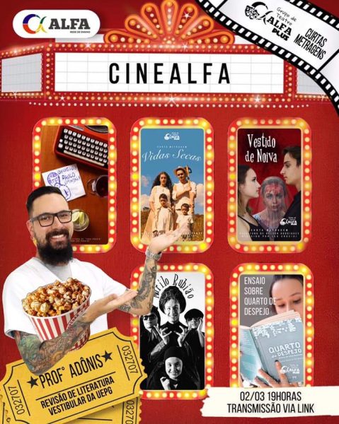O Grupo de Teatro Alfa Plus, sob direção de Leonardo Chociai e fotografia de Micael Rodrigues e Leonardo Chociai, apresentou, nesta terça-feira, 2, cinco curta metragens sobre as obras literárias cobradas pelo vestibular da Universidade Estadual de Ponta Grossa. A transmissão ocorreu via youtube e contou com a presença de Leonardo Chociai, ator e diretor do grupo, Felipe Cavichiolo, diretor do colégio Alfa Plus, e Adonis Ribaski, professor responsável por apontamentos breves sobre as obras e biografias dos autores.