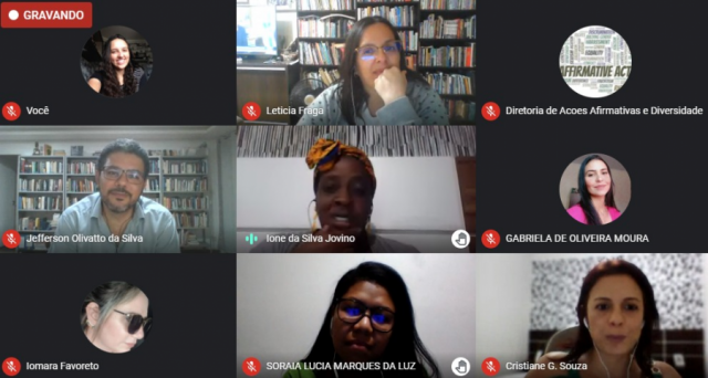 Alguns participantes da conversa relataram suas próprias experiências como estudantes na universidade. Soraia Lucia Marques da Luz, acadêmica do curso de Serviço Social na UEPG, contou sobre a importância do pertencimento neste meio. “A representatividade tem uma carga e uma potência tão grande para gente enquanto minoria que só quem passa na pele sabe como é”, observa.