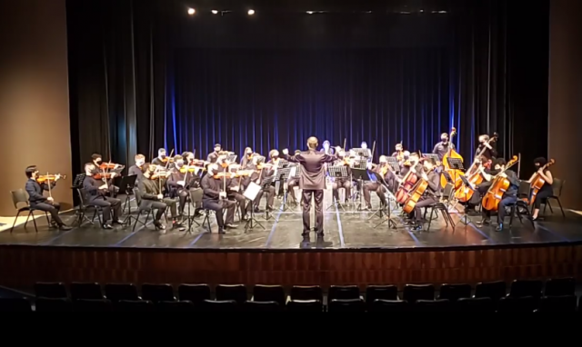 Após um ano e meio de atividades presenciais suspensas, a Orquestra Sinfônica de Ponta Grossa subiu ao palco do Cine Teatro Ópera no último dia 10. A apresentação, promovida e transmitida ao vivo pelas redes sociais da Fundação Municipal de Cultura, envolveu a primeira parte do concerto “Música para Todxs”. O evento marca o início das performances do grupo em 2021, após a paralisação em decorrência da pandemia da Covid-19.