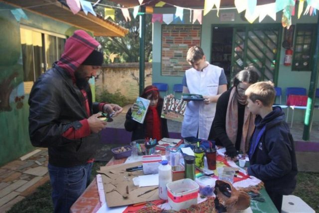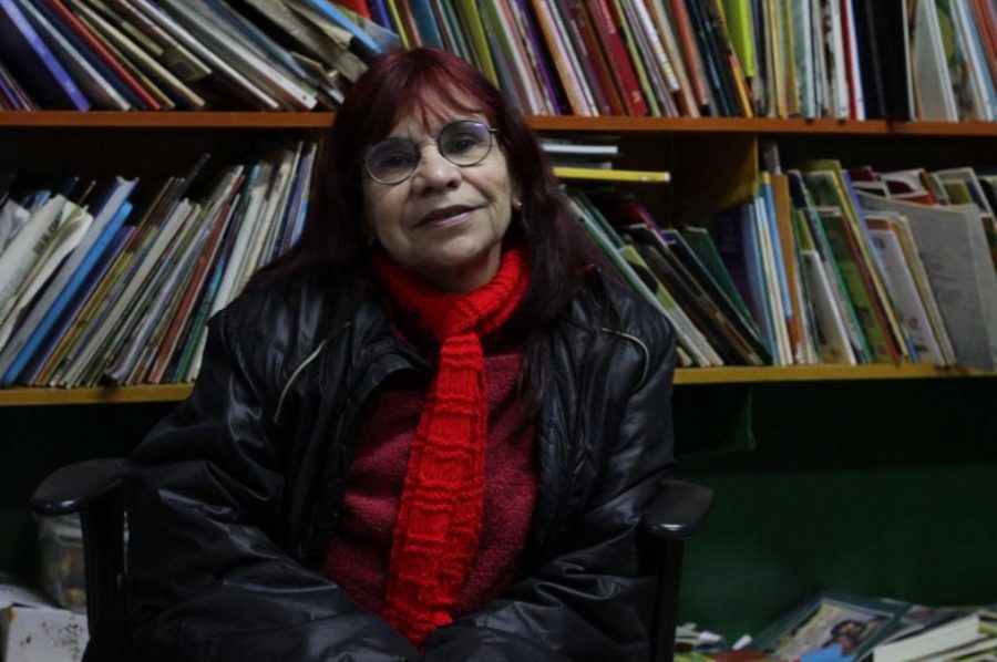 Lucélia Clarindo, organizadora do Bando da Leitura, mostra livros sobre o saci / Foto: Victor Gabriel SchinatoPor Victor Gabriel Schinato
