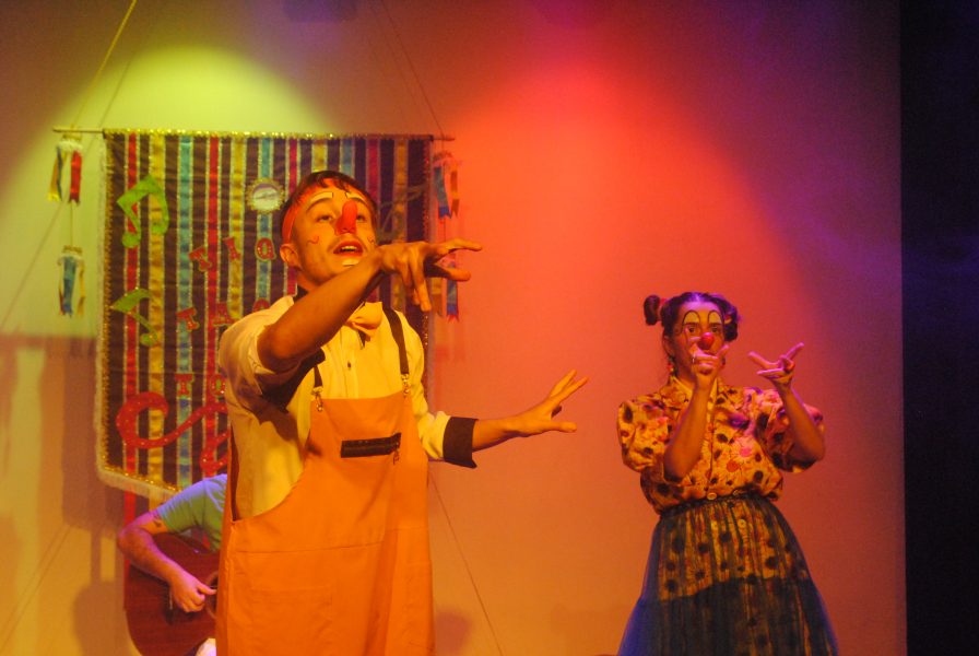 O palco B do Cine-teatro Ópera recebeu no último sábado (05) o espetáculo “As aventuras musicais de Tique, Taque e Toque”, realizado pela Companhia Levar-te em parceria com o Programa Plateia, da Secretaria Municipal de Cultura. A apresentação trouxe três palhaços que buscaram alegrar a plateia com cantigas de roda, muitas brincadeiras e interações em um mundo mágico e lúdico.