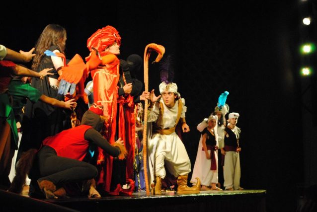 Um clima descontraído repleto de boas risadas marcou o musical Aladdin que ocorreu nos dias 05 e 06 de agosto no Auditório A do Cine Teatro Ópera. O espetáculo, dirigido por Renan Simionato e interpretado pelos integrantes do grupo de teatro do Colégio Sant’Ana, teve os ingressos esgotados em duas das três sessões apresentadas e atraiu pessoas de todas as idades.