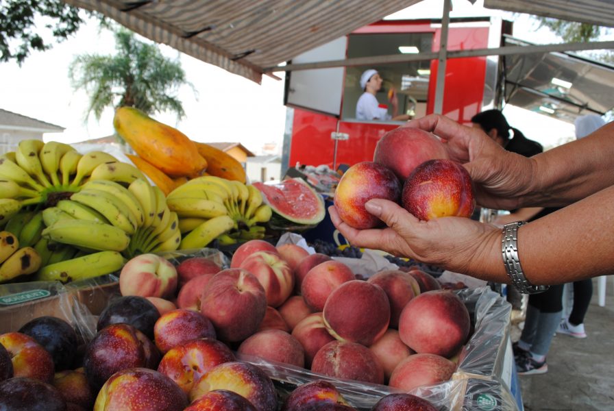 Público encontra variedade de frutas em feira na Praça Santo Antônio. Foto: Maria Cecília TramontinA Praça Santo Antônio em Ponta Grossa recebe nas sextas-feiras a Feira Gastronômica do Jardim Carvalho. Ela teve início em maio de 2022 e, desde então, vem recebendo cada vez mais feirantes e diversidade nos produtos. Além de uma grande variedade de opções para alimentação, é possível encontrar na feira artesanatos e plantas como suculentas e flores. A feira inicia a partir das 15 horas e se estende até por volta das 21 horas. Esporadicamente ocorrem shows, como o que aconteceu na última sexta-feira (1º) com o MP Brass, grupo de metais e percussão Maestro Paulino.