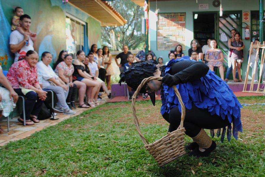 A Festa da Primavera também abriu espaço para o grupo Flogisto, uma companhia teatral que trabalha com peças de didática científica. Por meio do projeto selecionado pelo edital 011/2023 dos 200 anos de Ponta Grossa, o Bando da Leitura foi contemplado com a apresentação da peça “Arara, Gralha e Pinhão, até quando existirão?”. Viviane Aparecida Oliveira da Silva, que atua no grupo, explica que apresentar a peça para crianças e adultos é passar mensagens de forma simples e lúdica de modo que as pessoas se identifiquem. “Uma maneira de contar a história e mobilizar as pessoas para a mensagem que o teatro passa”, observa Viviane.