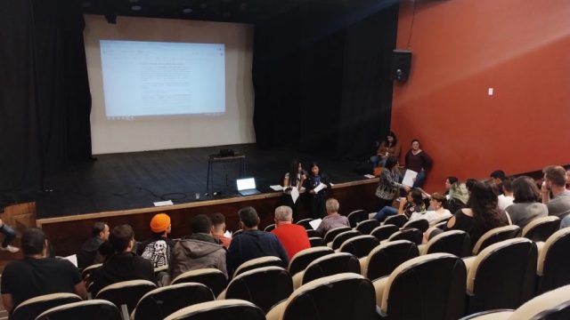 Na primeira consulta pública realizada na segunda-feira (09), os produtores se reuniram no auditório B do Ópera e participaram de uma dinâmica entre grupos. O objetivo da atividade era que as pessoas presentes realizassem a leitura do edital de produção audiovisual e dos editais referentes aos Prêmios de audiovisual e apontassem sugestões.