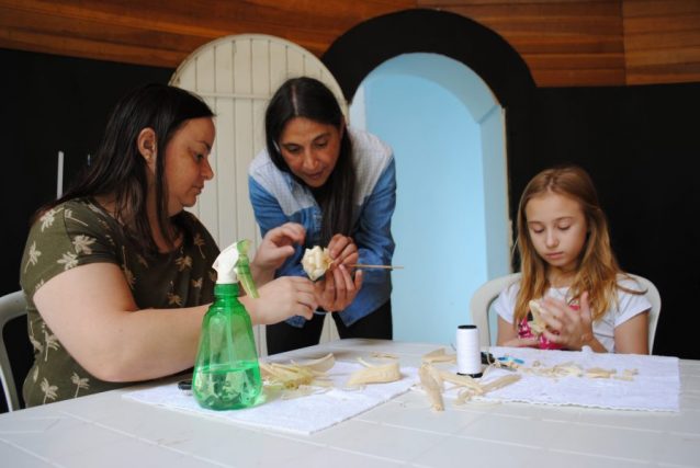 Na oficina, a professora Vanderli Santos prioriza a criação de artesanatos que representam a cultura do Paraná. “A palha de milho é um patrimônio imaterial que depende do incentivo de pessoas para não deixar esse tipo de artesanato manual desaparecer”, diz a professora. Além da palha de milho, a confecção utiliza materiais como tesoura, barbante e palitos de churrasco. Os participantes montavam as peças conforme as instruções da professora.