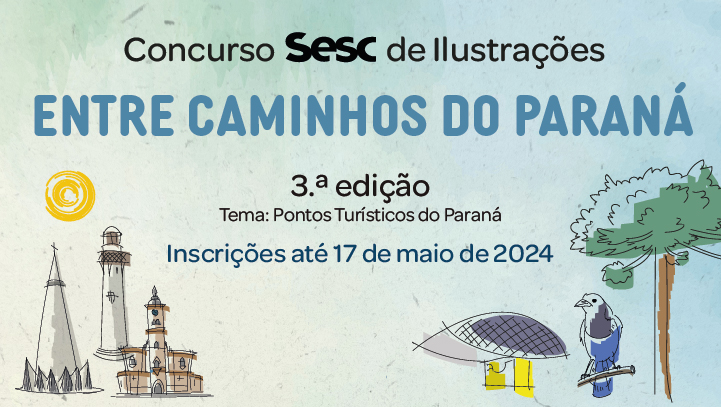 Foto: reproduçãoCom objetivo de disseminar a cultura paranaense, o SESC Paraná promove a 3ª edição do concurso de ilustração “Entre os Caminhos do Paraná”. As inscrições iniciaram no dia 18 de março e seguem até o dia 17 de maio de 2024. Para se inscrever no concurso basta se deslocar ao Sesc Paraná mais próximo ou encaminhar toda a documentação prevista no edital via Correios.