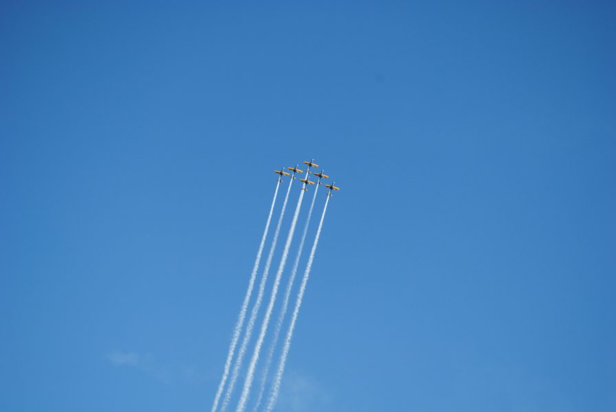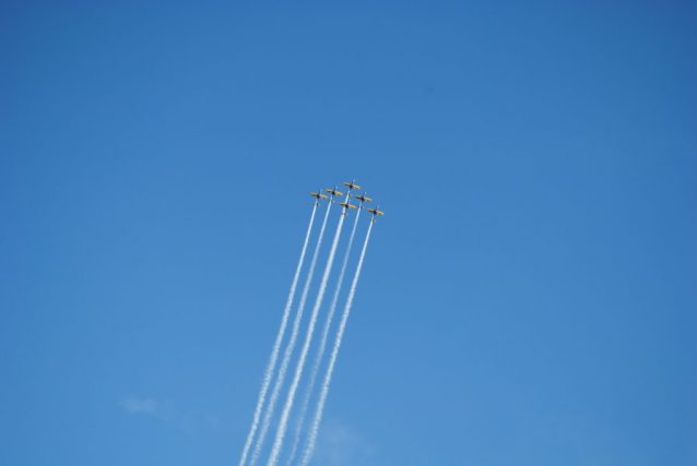 A Esquadrilha da Fumaça apresentou uma série de acrobacias no centro de eventos de Ponta Grossa no sábado (20), atraindo milhares de pessoas. O evento contou com narração ao vivo e entrada livre. Sete aeronaves do modelo Super Tucano realizaram 50 acrobacias ao longo da apresentação, que durou cerca de 40 minutos.