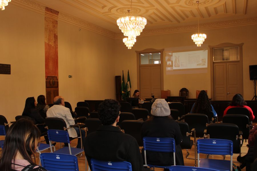 Em seguida, a Professora Priscila Prazeres, Técnica em Educação Profissional e Tecnológica, trouxe os aspectos do Senac quanto a formação profissional de mulheres e trabalhos desenvolvidos pelos alunos. Já Talita Medeiros, Professora e responsável pelo Projeto de extensão “Entre linhas fitas e folhas: O acervo de Dilma Ozório nos Campos Gerais”, abordou em sua apresentação a modista de 1950, Dilma Ozório, referência em alta costura da região de Ponta Grossa, e sua importância social, econômica e cultural.